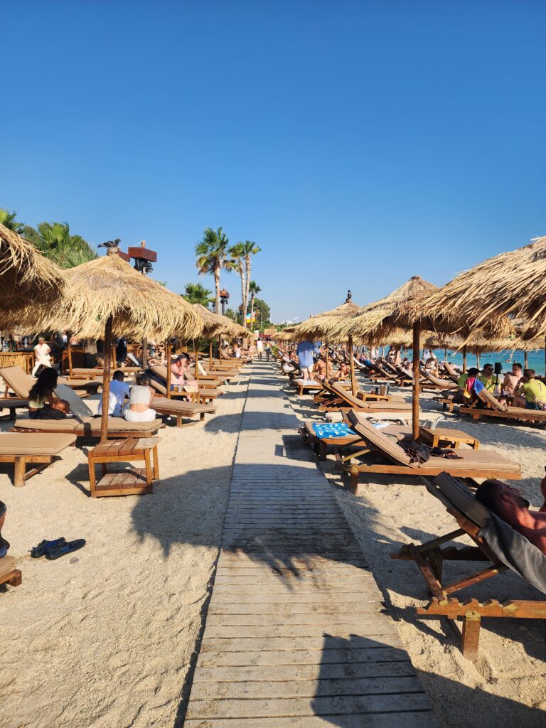 Once the evening hits, Bolivar transforms. The restaurant serves fresh Mediterranean dishes—think seafood pasta, grilled meats, and mezze to share—and after dinner the place shifts into full beach club mode. The music gets louder, the lights come on, and suddenly you’re dancing barefoot in the sand under the stars. They often host big-name DJs, so depending on the night it can feel like you’re at a mini festival right on the beach.